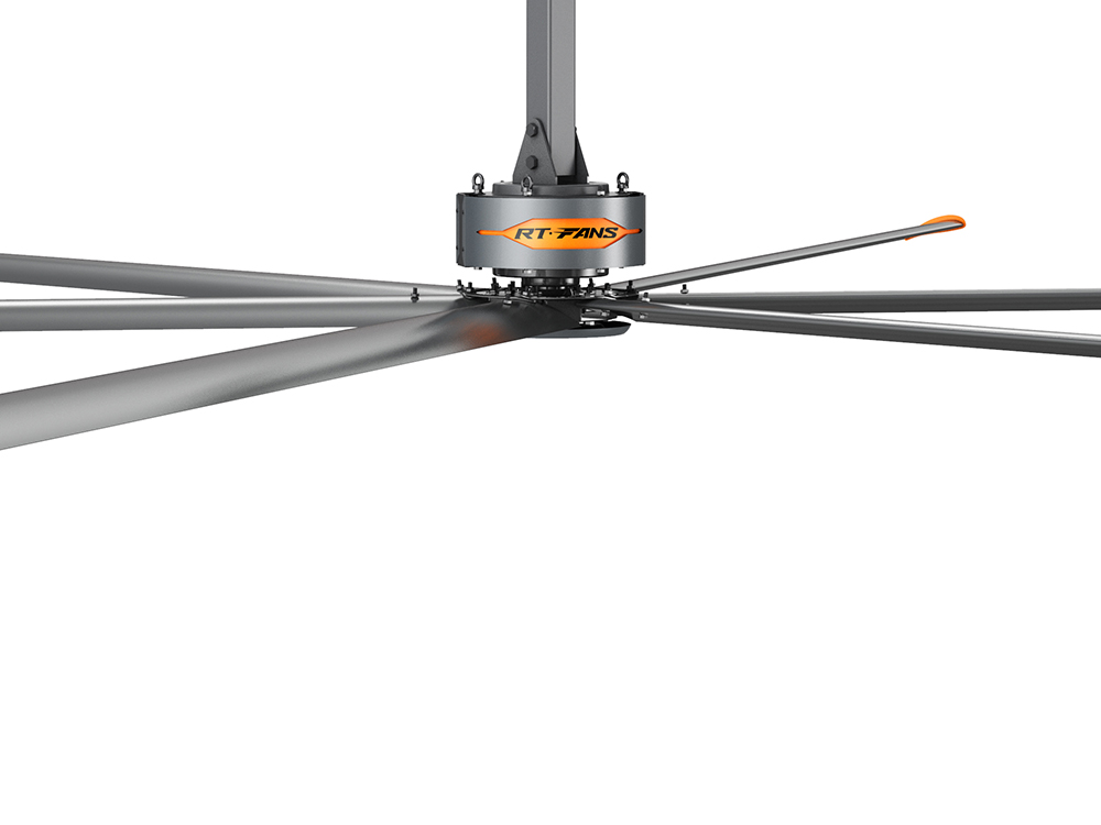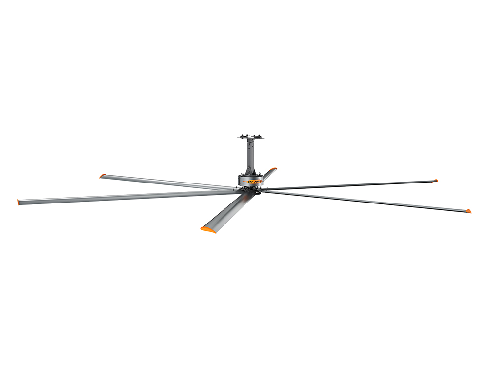 大面積微風(fēng)流動加快了人體體表汗液的蒸發(fā)速度,產(chǎn)生自然降溫,就像人剛剛游泳出海后感受海風(fēng)吹拂的涼爽感覺一樣,讓人體皮膚表面感受到4-6攝氏度的溫差,另外瑞泰風(fēng)大型工業(yè)風(fēng)扇特性,通過改變風(fēng)速大小的變化,在調(diào)節(jié)人體感受的同時保持身體水分,從而增強了人體感覺的舒適度。瑞泰風(fēng)自主研發(fā)制造了一臺HVLS大風(fēng)量、低轉(zhuǎn)速工業(yè)大風(fēng)扇。