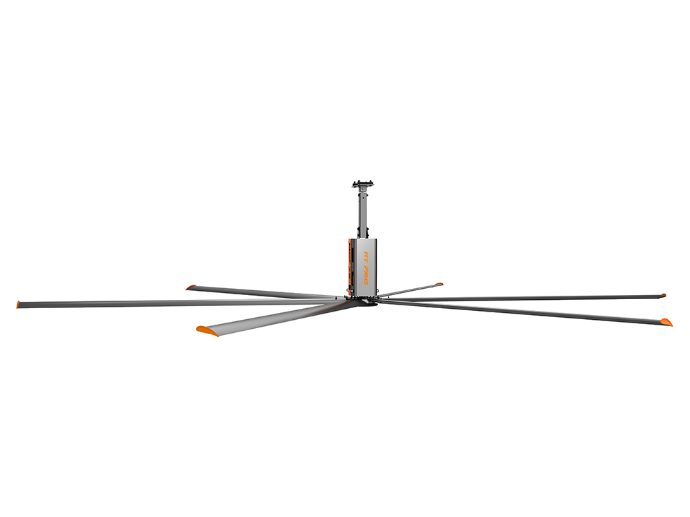 大面積微風(fēng)流動加快了人體體表汗液的蒸發(fā)速度,產(chǎn)生自然降溫,就像人剛剛游泳出海后感受海風(fēng)吹拂的涼爽感覺一樣,讓人體皮膚表面感受到4-6攝氏度的溫差,另外瑞泰風(fēng)大型工業(yè)風(fēng)扇特性,通過改變風(fēng)速大小的變化,在調(diào)節(jié)人體感受的同時保持身體水分,從而增強了人體感覺的舒適度。瑞泰風(fēng)自主研發(fā)制造了一臺HVLS大風(fēng)量、低轉(zhuǎn)速工業(yè)大風(fēng)扇。